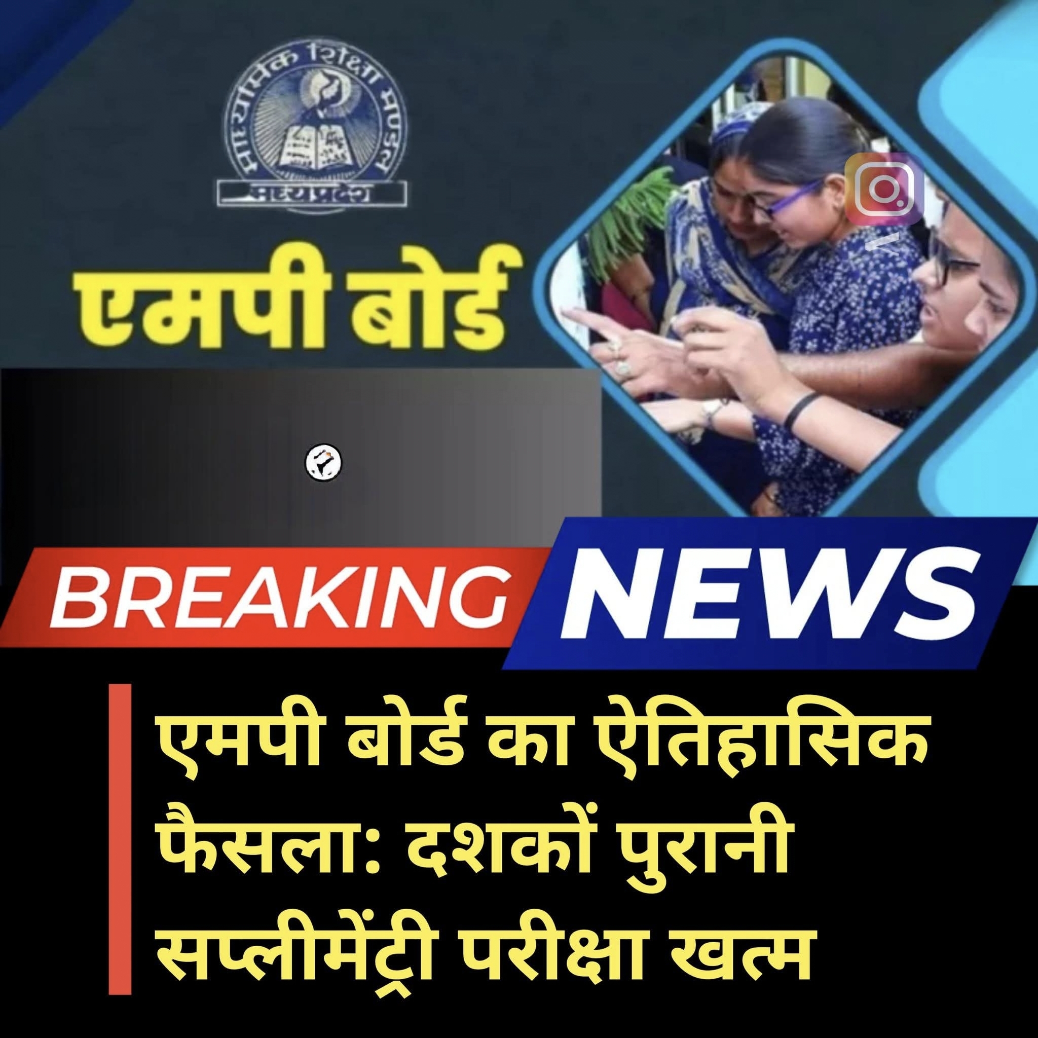 भोपाल: मध्य प्रदेश माध्यमिक शिक्षा मंडल (MPBSE) ने दशकों पुरानी परीक्षा प्रणाली को बदलते हुए छात्रों के हित में एक क्रांतिकारी कदम उठाया है। अब बोर्ड परीक्षाओं में ‘सप्लीमेंट्री’ (पूरक परीक्षा) का शब्द इतिहास बन जाएगा। इसकी जगह अब ‘द्वितीय परीक्षा’ (Second Examination) प्रणाली लागू कर दी गई है।