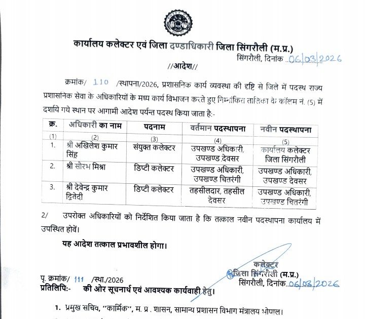 देवसर-चितरंगी में बदले एसडीएम, कलेक्ट्रेट में नई पदस्थापना