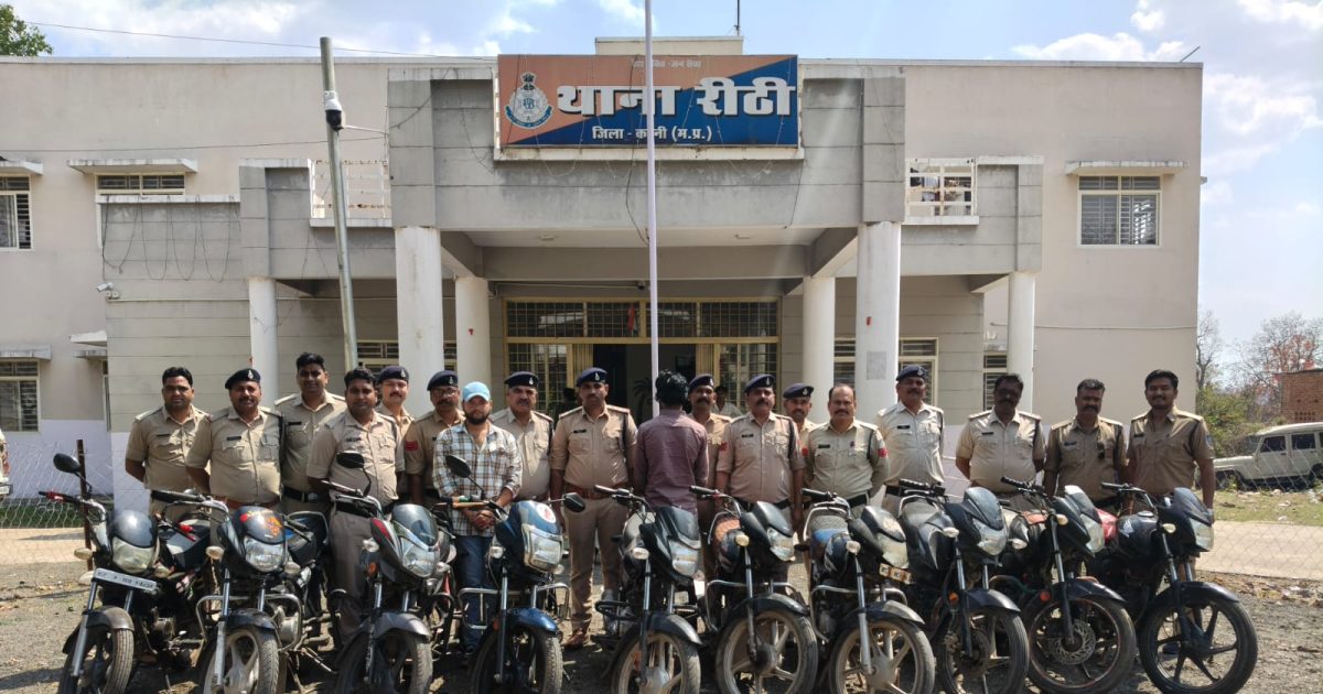 रीठी पुलिस ने शातिर मोटरसाईकिल चोर को किया गिरफ्तार, एक साथ 10 चोरी की मोटर साईकिलें बरामद